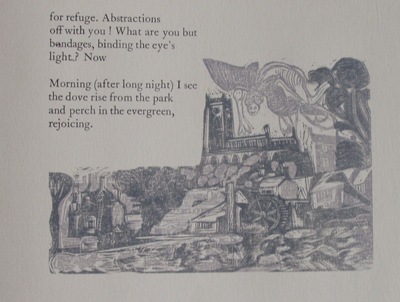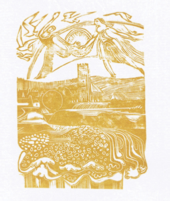 Songs of a New Taliesin by Peter Abbs Size: 8 x 10.25 ins. Date: July 1979 Description: [36pp.] Set in 18pt Caslon type. Printed on Abbey Mills Greenfield paper. Bound in Liberty patterened fabric over boards. Marbled paper end-papers. Illustrations: 11 lino-cuts by Nicholas Parry, printed in shades of brown, blue and gray. 72pt Caslon caps cut in lino on title-page. No. of Copies: 90 numbered copies. Comments: Signed by Peter Abbs and Nicholas Parry Price: £21 |