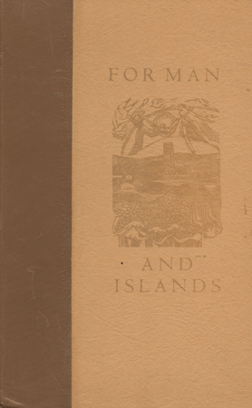 For Man and Islands by Peter Abbs Size: 6 x 9.25 ins. Date: June 1978 Description: [64pp.] Set in 12pt Centaur type. Printed on Barcham Green paper. Quarter bound in brown leather with printed textured paper over boards with black lettering to spine. Textured cream end-papers. Illustrations: 11 wood-engravings by Nicholas Parry. No. of Copies: 70 numbered copies. Comments: Signed by Nicholas Parry and Peter Abbs. 0906057 04 3 (Hbk) and 0906057 05 1 (Pbk) Price: £21 |