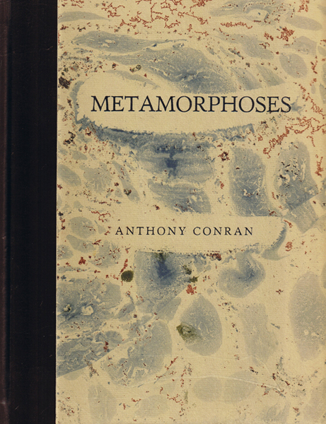Metamorphoses by Anthony Conran Size: 8 x 10 ins. Date: 1979 Description: 84pp. Set in S. B. 18pt. Verona type. Printed on Hayle Mill hand-made paper. Quarter bound in brown leather with printed marbled paper over boards with gilt lettering to spine. Mabled paper end-papers. Illustrations: 4 etchings in various colours by Nicholas Parry. No. of Copies: 90 numbered copies Comments: Signed by Nicholas Parry and Anthony Conran. Price: £30 |