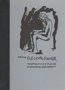 Poems by Else Lasker-Schuler. Translated by Nini Ettlinger Size: 8 x 10.5 ins. Date: October 1980 Description: [22pp]. Set in 16pt Poliphilus and Blado. Printed on Glastonbutu Antique paper. Bound in cloth covered boards with a printed label to the front cover and spine. Illustrations: Illustrated with line blocks from the original brush drawings by Josef Herman. No. of Copies: 130 numbered copies. Comments: Signed by Else Lasker-Schuler and Nini Ettinger. In 2007 a few copies were bound in blue printed card wrappers. Price: £18 |