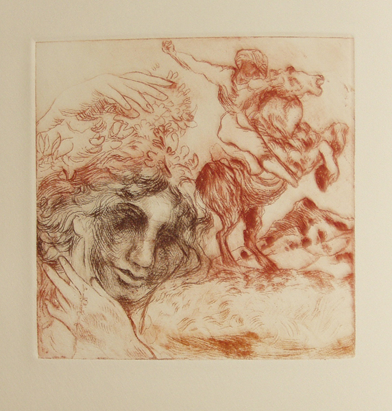 The Five Odes of Anacreon by Thomas Moore Size: 10.5 x 10 ins. Date: May 1985 Description: [24pp.] Set in 18pt and 24pt Caslon type. Printed on Zerkall cream mould-made paper. Quarter bound in cloth spine with a printed paper label, marbled paper over boards. Orange end-papers. Illustrations: 5 etched and engraved copper prints by Nicholas Parry No. of Copies: 75 numbered copies. Comments: Signed by Nicholas Parry. Price: £75 |