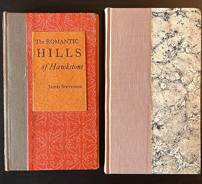 The Romantic Hills of Hawkstone by James Stevenson Size: 3.25 x 6 ins. Date: 1985 Description: 24pp. Set in 14pt Caslon. Printed on Basingwerk paper. Quarter bound in buckram over printed paper boards, with a paper label on the spine. Second copy is quarterbound in linen with marbled paper boards. Illustrations: 7 engravings by Nicholas Parry No. of Copies: 100.copies Comments: Signed by Nicholas & Mary Parry Price: |