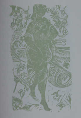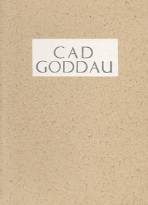 Cad Goddau by Meirion Pennar Size: 7.5 x 10.5 ins. Date: November 1992 Description: [43pp.] Set in Isaac Moore Old Face type. Printed on Zerkall paper. Bound in speckled cream paper covered boards with a printed label to the front cover. Green end-papers. Illustrations: 13 coloured lino-cuts by Nicholas Parry. No. of Copies: 90 numbered copies. Five copies in unique bindings. Comments: Signed by Nicholas and Mary Parry. Price: £36 |
