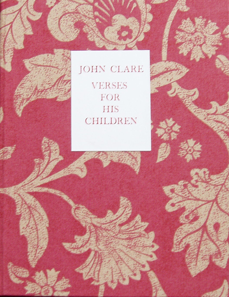 John Clare: Verses for his children edited by Eric Robinson Size: 8 x 10.5 ins. Date: 1993 Description: [48pp] Set in 14pt. Baskerville and printed on Lana paper. Bound in printed brown cloth covered boards, with a card label printed in red on the spine and front cover. Illustrations: 36 etchings by Nicholas Parry printed from line blocks. No. of Copies: 150 numbered copies. Comments: The title-page and each page of text (except three) contains an illustration.Signed by Nicholas and Mary Parry. Available with a watercolour by Mary Parry, £150. Price:£75 |