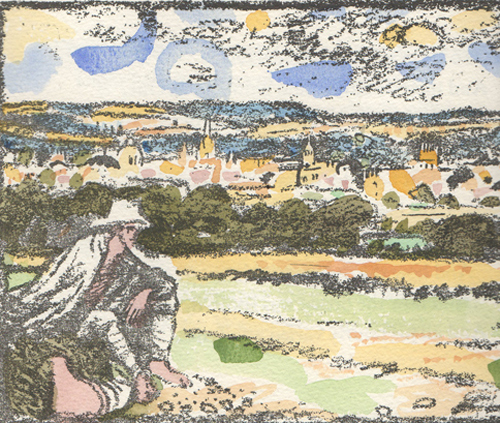 An Elegy written in a Country Churchyard by Thomas Gray Size: 15 x 11 ins. Date: 1995 Description: 64pp. Set in 36 point Garamond type. Printed on Saunders mould-made paper. Bound in quarter morocco with hand marbled paper covered boards. Other bindings were used. Illustrations: 29 original watercolour paintings by Nicholas Parry No. of Copies: 15 copies. Comments: Signed by Nicholas and Mary Parry Price: £1,500 |