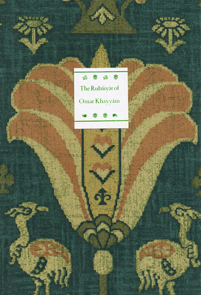 The Rubaiyat of Omar Khayyam. Introduction by Yann Lovelock Size: 6.5 x 9.5 ins. Date: May 1996 Description: [66pp.] Set in 18pt. Garamond. Printed on Roma Michelangelo paper. Bound in printed cloth covered boards with a printed paper label to the spine and front cover.Brown end-papers. Illustrations: 13 etchings printed in relief by Nicholas Parry No. of Copies: 100 numbered copies. Comments: Including 10 special copies.Signed by Nicholas and Mary Parry. Price: £90 |