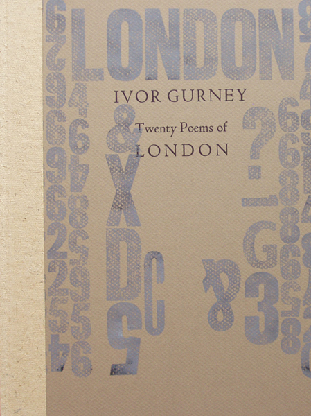 Twenty Poems of London by Ivor Gurney Size: 8.25 x 11.5 ins. Date: June 2006 Description: 34pp. Set in Poliphilus type. Printed on Magnani paper. Quarter bound in flecked white paper lettered in black on the spine, with printed light brown paper covered boards with lettering in black. Cream end-papers. Illustrations: Prints from photographs of London taken by the owner of the Parry's house in 1900.. No. of Copies: 30 numbered copies. Comments: Selected with an Introduction by R.K.R. Thornton. Type set by Kelsey Thornton. Signed by Nicholas and Mary Parry Price: £90 |
